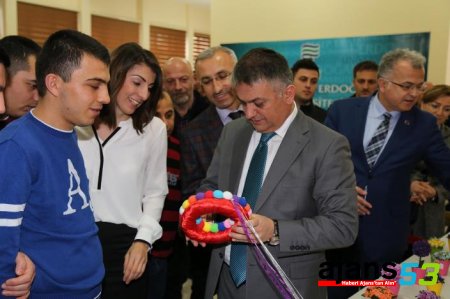 Çayeli Rehabilitasyon Merkezi öğrencilerinin el emeği ürünlerinden oluşan sergi, Recep Tayyip Erdoğan Üniversitesi Sosyal Tesislerinde açıldı.