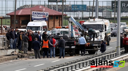 Erkan Özmısır (40) yönetimindeki 61 LL 384 plakalı kamyonet, Karadeniz Sahil Yolu Gündoğdu mevkisinde bariyerlere çarptı.