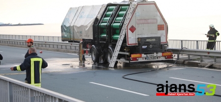 Alınan bilgiye göre, Çayeli ilçesi Karadeniz Sahil Yolu Yaka Mahallesi mevkisinde Muzaffer Yılmaz idaresindeki 53 DF 421 plakalı tırın tanker kısmının lastiği patladı.