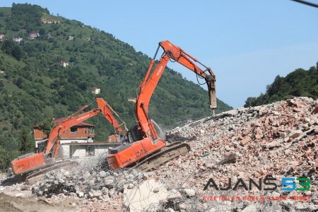 Rize'nin Ardeşen ve Çamlıhemşin ilçelerinde, Fırtına Vadisi üzerinde yapılan kaçak yapılar yıkılıyor.