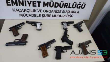 Rize'de durdurulan bir otobüste 9 ruhsatsız tabanca ele geçirildi, bir kişi tutuklandı.