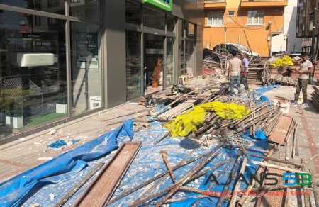 Rize'de, mantolaması yapılan bir binanın iskelesinin çökmesi sonucu 2 işçi yaralandı.