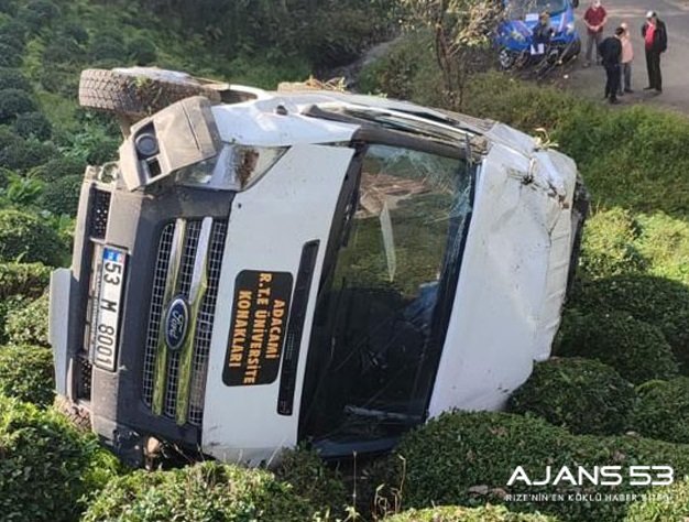 Rize'de çay bahçesine devrilen minibüsteki 3 kişi yaralandı