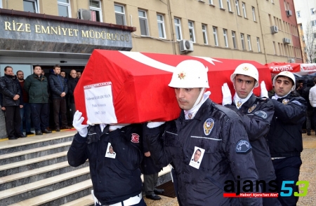 Rize'de, evinde geçirdiği kalp krizi sonucu vefat eden polis memuru Yıldırım Karaduman'ın cenazesi, törenle memleketine gönderildi.