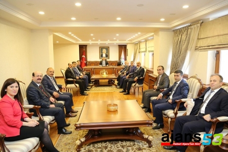 Vali Ersin Yazıcı, Ortahisar Kaymakamı Mahmut Şirinoğlu, Körfez Ticaret Odası Başkanı Mustafa Efe, Meclis Başkanı Güngör Ayhan ve Yönetim Kurulu Üyelerini makamında kabul etti.