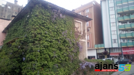 Rize’de Atatürk Caddesi üzerinde bulunan ve yıllardır ilgilenilmediği gözlenen iki katlı bina, gövdesini saran sarmaşıkların arasında adeta kayboldu.