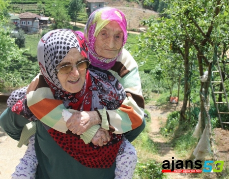 Rize’de 66 yaşındaki gelin ve 104 yaşındaki kaynana arasındaki dayanışma, gelin ve kaynana ilişkileri açısından bilinenleri unutturacak türden. Rize’nin Dörtyol Köyü’nde ikamet eden 66 yaşındaki Melahat Karaosman, 48 yıldır 18 yıl önce kaybettiği eşinin annesi 104 yaşındaki Hamide Karaosman ile birlikte yaşıyor. Evlendiği ilk günden beri kaynanasına hizmet eden Melahat Karaosman 18 yıl önce eşini kaybetmiş. Kayınpederi ise evlendiği ilk yıllarda hayatını kaybetmiş. 104 yaşındaki kaynana Hamide Karaosman böbrek yetmezliği yüzünden 16 yıldır diyalize girmek zorunda kalırken, Karaosman ilerleyen yaşı ve sağlık problemleri nedeni ile yürüyemiyor. Gelin ve kaynananın kaldığı ev yıllar önce çıkan bir yangında kül olurken, evin yerine ise köylüler kendilerine tek odalı bir ev yapmış. Ancak ev yaklaşık 300 metre mesafede dik bir tepede bulunuyor. Melahat Karaosman kaynanasını haftanın üç günü dik yamaçtan sırtında taşıyarak araba yoluna indiriyor. Kaynanası diyalizden çıktıktan sonra ise yine kaynanasını sırtına alarak evlerine taşıyor.