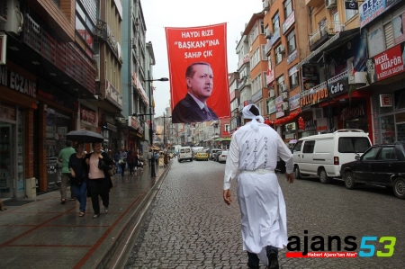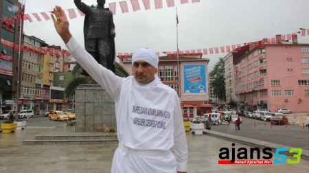 Rize’de Recep Tayyip Erdoğan’a ihanet edildiğini düşünen bir kişi kefen giyerek sokağa çıkıp eylem yaptı.