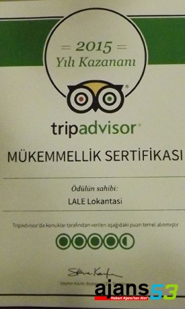 Dünya turizmini takip eden Tripadvisor firması Mükemmellik ödülünü Çayeli ilçesinde turizme hizmet veren Lale lokantasın verdi.