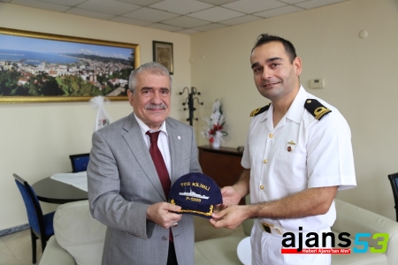 Rize limanında bir günlüğüne ziyarete açık olan askeri gemide görevli gemi komutanı Dnz. Kd. Yüzb. İlker Albayrak ve gemi personeli ilimize yapmış oldukları ziyaret çerçevesinde, Rize Belediye Başkan Vekili Sultan Yılmaz'ı makamında ziyaret ettiler.