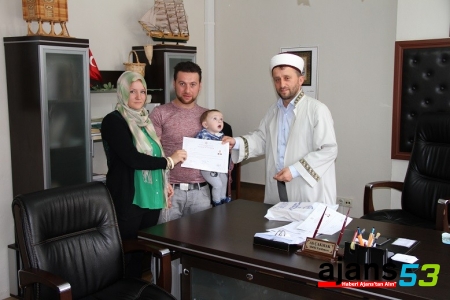 İhtida merasiminde okunan Kur’an-ı Kerim’in ardından İl Müftü Yardımcısı Çakmak, İslam dininin güzelliklerinden söz ederek, müslüman olma kararı verip 'Medine' ismini alan Rize gelinine ihtida belgesini verdi.