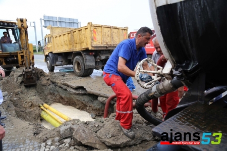 Rize Belediyesi ekipleri içme suyu hattında sabahın erken saatlerinde ani oluşan arızayı gidermek için çalışmalarına aralıksız olarak devam ediyor.