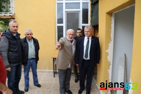 Yol çalışmalarını inceleyen Başkan Kasap ve ekibi Cuma namazı sonrası Atmeydanı mahallesinde bulunan Orta Alan Camii altında Rize Belediyesinin desteği, Orta Alan Camii ve Kur'an Kursu Yaptırma ve Yaşatma Derneğinin öncülüğünde talebeler için yaptırılan dersliği gezdi.
