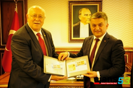 Vali Ersin Yazıcı, PTT'nin 175. kuruluş yıl dönümü nedeniyle Rize PTT Başmüdürü İbrahim Cihan ve beraberindeki heyeti makamında kabul etti.