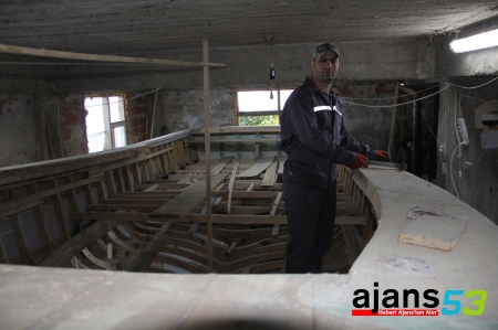 DENİZDEN 1.5 KM UZAKTA EVİNİN BODRUMUNDA 8.5 METRE UZUNLUĞUNDA TEKNE YAPIYOR