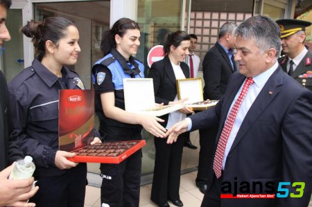 Vali Ersin Yazıcı ilk olarak, Cumhuriyet Polis Merkezi’nde emniyet personellerini ziyaret ederek, bayramlarını kutlayıp, vatandaşların huzur ve güveni için bayramda görev yapan tüm kamu personeline teşekkür etti. Vali Yazıcı, tüm güvenlik mensuplarını, Rize`de bayramın huzur ve güven içerisinde geçmesini sağladıkları için tebrik ederek, "Bizler, kamu görevlisi olarak, bulunduğumuz görevler itibariyle diğer bazı kamu görevlilerinden daha farklı bir konumdayız. Konumumuz gereği, vatandaşımızın huzur içerisinde, güvenliğin sağlandığı bir ortamda bayramlarını yaşayabilmelerini temin etme görevi bizlere ait. İlimizde bayramın huzur ve güven içerisinde yaşanmasını sağladığınız ve görevlerinizi fedakârca yerine getirdiğiniz için hepinizi tebrik ediyorum” dedi.