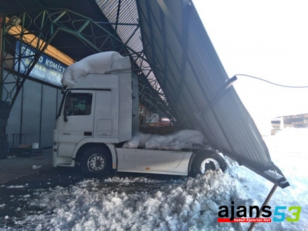 Rize’de üç gün etkili olan yoğun kar yağışı sonucu şehir merkezinde kar kalınlığı bir metreye ulaşırken, hayat durma noktasına geldi. Yoğun kardan olumsuz yönde etkilenen yerlerden bir tanesi de meyve-sebze hali oldu. 60 dükkanlık halin 30 dükkanının bulunduğu bölümün çatışı üzerindeki aşırı kar yüküne dayanamayarak çöktü. Meyve sebze yüklü 9 TIR ve kamyon yıkılan çatının altında kaldı. Olay sırasında can kaybı ve yaralanma olmadı. Halin kalan 30 dükkanlık bölümündeki çatının da çökmemesi için Rize Belediyesi itfaiye ekipleri acele ile çatıdaki kar kütlesini temizledi. Sağlam çatının çökmemesi için esnaf da kalaslarla çatıyı destekledi. Hal Başkanı Ahmet Özyürek yaptığı açıklamada, 30 dükkanın bulunduğu bölümün çatısının aşırı kar yüklenmesi ile bir anda çöktüğünü, 9 aracın çatı altında kaldığını, can kaybı ve yaralanma yaşanmadığını söyledi.