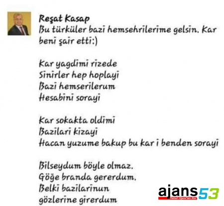 Karla mücadele çalışmalarındaki aksaklıklardan dolayı eleştirilerin hedefi olan Rize Belediye Başkanı Prof. Dr. Reşat Kasap, sosyal medya üzerinden yazdığı şiir ile kendini savundu.