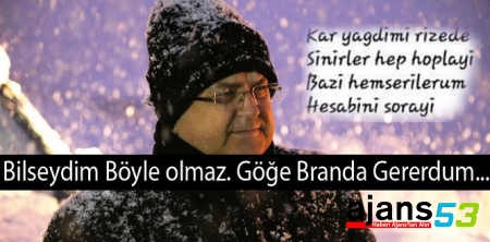 “Kar yağdı mi Rize de. Sinirler hep hoplayı. Bazı hemşerilerum hesabini sorayı. Kar sokakta oldu mi. Bazıları kizayi. Haçan yuzume bakup bu karı benden sorayı. Bilseydum böyle olmaz. Göğe branda gererdum. Belki bazılarinun. Gözlerine girerdum.”