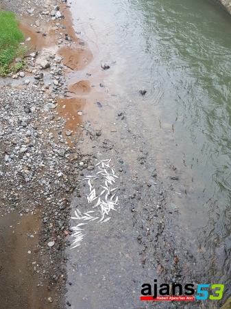 RİZE’deki Çiftekavak Deresi'nde çok sayıda ölü balık görülmesi paniğe neden oldu. Dere kefali olduğunu tespit edilen balıkların kimliği belirsiz kişi ya da kişilerce dereye döküldüğü sanılıyor.