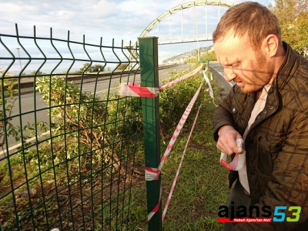 Karadeniz Sahil Yolu’nun orta refüjünde bulunan çitlerin açık olduğunu gören vatandaş kendi çabaları ile açık bölgeye emniyet şeridi çekti