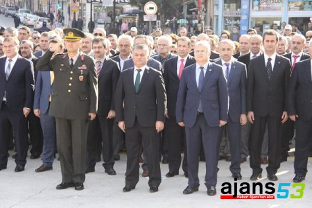 Program ilk olarak Vali Ersin Yazıcı, Garnizon Komutanı Jandarma Kıdemli Albay İsmet Cansaran ve Rize Belediye Başkanı Prof.Dr.Reşat Kasap’ın anıta çelenk sunumu ile başladı.