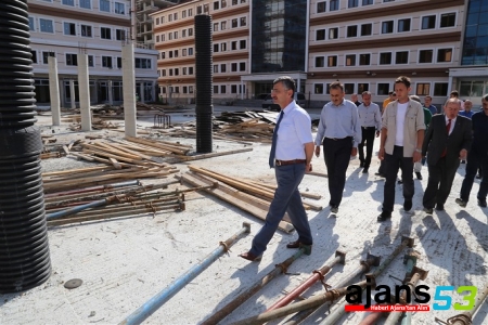 Rize Valisi Erdoğan Bektaş, Rize Merkez Anadolu İmam Hatip Lisesi Hizmet Binası, Sosyal Tesis Hizmet Binası ve Yurt Binası İnşaatında incelemelerde bulundu.