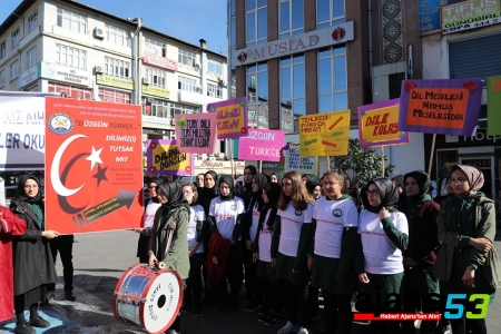 Yaren Öksüz ise öğrenciler adına yaptığı konuşmada, okul olarak Türkçe'nin katledilişine ve tutsak edilmeye çalışılmasına "dur" demek için toplandıklarını belirterek, "Dünya üzerindeki akımlara ayak uydurmaya çalışan an ve an gelişmeleri takip eden genç nesil, popüler olmak için en kutsal varlıklarımızdan biri olan dilimizi yani Türkçemiz bilinçsizce kullanmakta ve bunu bir marifet saymaktadır." ifadesini kullandı.