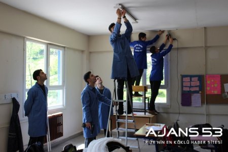 Tevfik İleri Mesleki ve Teknik Anadolu Lisesi Müdürlüğü tarafından hazırlanan ve yürütülen ‘Kardeş Eli Projesi’ çerçevesinde ilimizin bazı okullarının tamirat işleri yapılıyor.