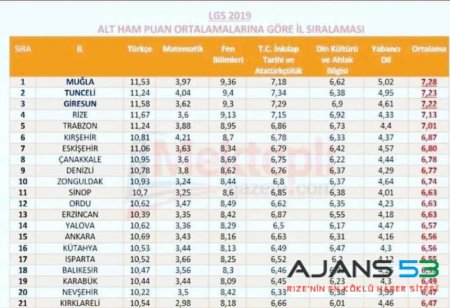 1 Haziran 2019 da yapılan LGS sınav sonuçları açıklandı. Açıklanan sonuçlara göre Rize; Türkçe ve Din Kültürü ve Ahlak Bilgisi derslerinin net ortalamalarında 1.si , Genel net ortalamasında ise Türkiye 4.sü oldu. Rize Milli Eğitim Müdürü Yaşar Koçak, Rize'de Liselere Geçiş Sınavında (LGS) genel net ortalamasında Türkiye dördüncüsü olduklarını bildirdi.