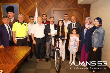 Çözüm Koleji 7. sınıf öğrencisi Nazende Balta’ya hediyesi Rize Valisi Kelam Çeber tarafından verildi.