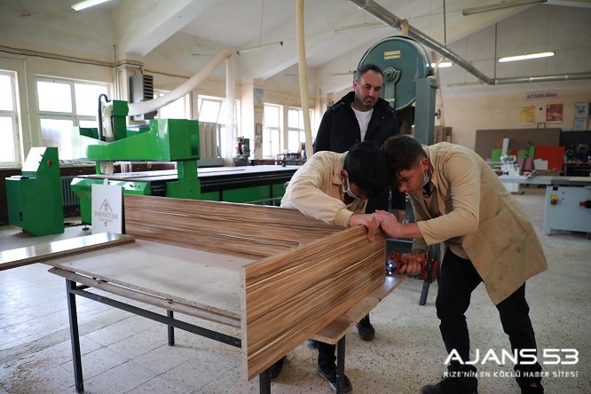 Okul Müdürü Mustafa Hacıoğlu ise mobilya bölümünün yoğun çalıştığını dile getirerek, 21 okula kütüphane, Çamlıhemşin Öğretmenevine kış masaları yaptıklarını aktardı.