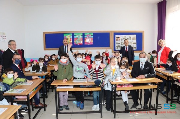 Vali Kemal Çeber, beraberindeki Belediye Başkanı Rahmi Metin ve İl Milli Eğitim Müdürü Engin Emen ile Vakıflar İlköğretim Okulunda öğrencilere karne verdi.