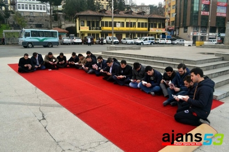 Ak Parti Rize İl Gençlik Kolları Yönetim Kurulu üyeleri Rize Cumhuriyet Meydanı’nda toplanarak yere serdikleri halı üzerine oturarak “Gençlerle Başbaşa” kitabını okudular.