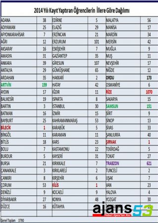 İŞTE 2014 KAYITLARINA GÖRE İL İL RTEÜ`NÜN TERCİH SAYILARI