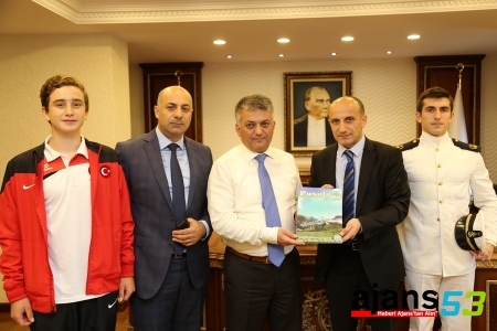 Çayeli Ahmet Hamdi İshakoğlu Mesleki ve Teknik Anadolu Lisesi Okul Müdürü ve öğrencileri il Valimiz Sayın Ersin YAZICI’yı makamında ziyaret etti. 21-23 Mayıs tarihleri arasında Bosna Hersek’te yapılan Rafting alanında Avrupa Şampiyonu olan A Milli Takımında yer alan ve aynı zamanda Çayeli Denizcilik Meslek Lisesi 11/ A sınıfı öğrencisi olan Ahmet Umut SARGIN’ın da bulunduğu ziyarette Okul Müdürü Hüseyin ŞAHİN Mayıs 2015 itibariyle çıkardıkları okul dergisi PUSULA’yı Vali Bey’e taktim etti. Vali Bey Şampiyon olan Rafting Mili Takımı öğrencisini tebrik etti ve çalışmaları hakkında bilgi aldı.