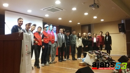 Türk Kızılayı Rize Şubesi, Ali Metin Kazancı Rize Lisesi öğrencileri ile buluştu. Düzenlenen törende konuşan Kızılay Rize Şube Başkanı Mehmet Nuri Gezmiş: ''Değerli öğrencilerimizle birlikte Kızılay tanıtım filmimizi izledik. Kızılay'ımızı anlattık, öğrencilerimizin sorularını cevapladık. Rize Lisesi öğretmen ve öğrencileri, Kızılay Haftası münasebetiyle ''Bir ayakta seninle sıcak olsun'' Kampanyası düzenlemişler. Bu kapsamda Öğretmen ve öğrencilerimiz 1250 adet çorap bağışı toplamışlar ve bunları tarafımıza teslim ettiler. Eski bir eğitimci olarak bu davranışlarından onur duydum, kendilerini canı gönülden kutluyorum. Hayatları boyunca iyi birer Kızılaycı olmalarını temenni ediyor. Sonsuz teşekkürlerimi sunuyorum.'' dedi.