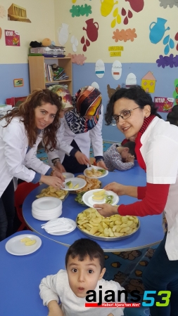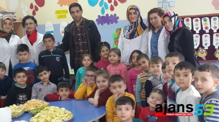 Rize'deki ilkokul öğrencilerine yönelik "Sağlıklı Meyve Tabağım” etkinliği İkizdere Hakkı Emine Ekşi İlçe Hastanesi tarafından İkizdere Atatürk İlkokulu okul öncesi öğrencilerine yönelik olarak gerçekleşti.