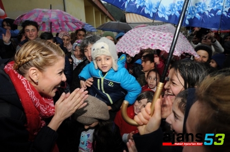 - DERNEK BAŞKANI ÜNLÜ SANATÇI GÜLBEN ERGEN, AÇILIŞ TÖRENİ İÇİN KENDİSİNİ YAĞMUR ALTINDA BEKLEYEN VE TÖREN SIRASINDA DA ISLANAN MİNİKLERİ GÖRÜNCE PROTOKOL ÇADIRI YERİNE TÖRENİ YAĞMUR ALTINDA ÇOCUKLARLA BİRLİKTE İZLEDİ