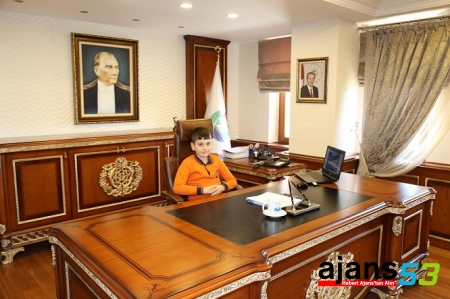 23 Nisan Çocuk Bayramı dolayısıyla Vali Ersin Yazıcı'nın koltuğuna oturan 10 yaşındaki Berat Kart "Cumhurbaşkanımızın şehri Rize'de Vali olarak bu koltukta oturmaktan çok büyük gurur duyuyorum" dedi.