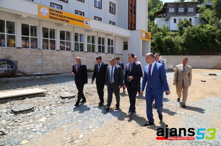 Vali Ersin Yazıcı, Fındıklı ve Pazar İlçelerinde yapımı süren okul, pansiyon ve Hükûmet Konağı inşaatlarını gezerek incelemelerde bulundu.