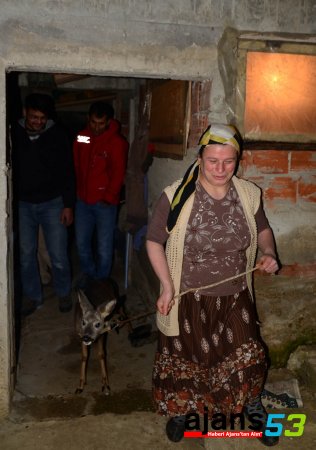 Bacaklarından yaralı ve bitkin halde olan karaca yavrusunu ahırdaki ineğinin yanına koyan Tuna, daha sonra durumu yetkililere bildirdi.