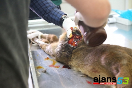 Yavru karaca burada, veteriner hekimler Okray Uçar ve Oğuz Aşkın Torun tarafından, yaklaşık 1 saat süren ameliyatla yaraları dikilerek sağlığına kavuşturuldu.