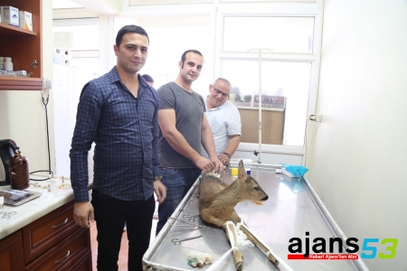 Veteriner Hekim Okray Uçar, yavru karacanın kendilerine getirildiğinde durumunun ağır olduğunu ve hemen ameliyata aldıklarını ifade ederek, “İki parça derin travmatik yarası vardı. İç kas dokusuyla birlikte travmatik bir şekilde yaralanmıştı. Dış dokuları onarıp, temizleyip diktik. Gerekli müdahaleyi yaptık. Genel sağlık durumu iyi. Bir problemi yok. Milli Parklar Müdürlüğüne haber verip kendilerine teslim edeceğiz” dedi.