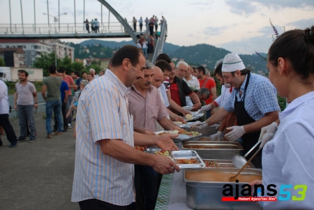 Yaklaşık bin kişinin orucunu açtığı iftar sofrasına Çayeli Belediye Başkanı Dr. Atilla Esmen, Kent Konseyi Başkanı Vatan Karakaş ve çok sayıda vatandaş katıldı.