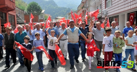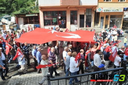 İkizdere Derneği Başkanı İsmet Ekşi’de “Devletimize, Cumhuriyetimize, ulusal bütünlüğümüze, demokrasimize, çağdaş ve insancıl değerlerimize sahip çıktığımızı onları koruma azim ve kararlılığımızı göstermek için buradayız. Vatandaşlarımıza sevgimizi, saygımızı, dayanışma arzumuzu göstermek için, demokratik kurallar ve insan haklarına dayalı işleyen devletimizin ulusal sınırlarımızın arkasında olduğumuz göstermek için buradayız. Allah devletimizin ve milletimizin dirliğini ve hakka dayalı düzenimizi korusun.” dedi.