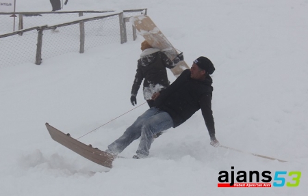 Yaylaya gelen yerli ve yabancı turistlerin mangal yakıp horon oynayarak karın tadını çıkardığı şenlikte, bazı vatandaşlar da naylon poşetlerle, şambrellerle kaymaya çalıştı. Sağlık ekiplerinin olası kazalara karşı tedbir aldığı şenlikte, katılımcılara etli pilav ikram edildi.