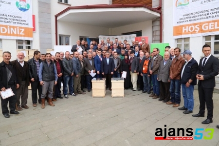 İkizdere'de Gıda, Tarım ve Hayvancılık İl Müdürlüğü ve Rize ili Arı Yetiştiriciliği Birliği ile birlikte yürütülen Arıcılığı Geliştirme Projesi kapsamında arı yetiştiricilerine 600 adet çift katlı kovan dağıtıldı.