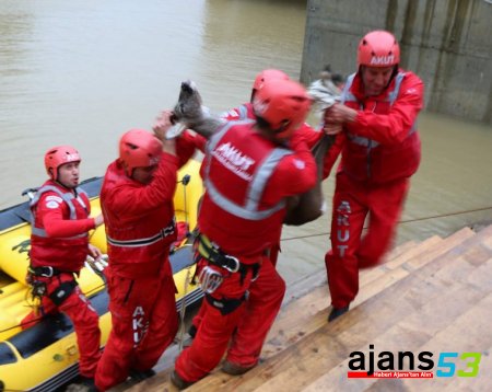 İlginç kurtarma operasyonu Rize’nin Hemşin ilçesinde gerçekleşti. İlçe merkezinde bulunan yaklaşık 20 metre derinlikteki gölete 3 yaşında olduğu tespit edilen bir karaca düştü. Vatandaşlar Milli Parklar Bölge Müdürlüğü ekiplerine haber verirken, AKUT’tan da yardım istendi. Olay yerine giden 6 kişilik AKUT ekibi bot yardımı ile karacaya ulaşmayı başardı. Kurtarma operasyonu sırasında ekip akıntıya kapılmamak için içerisinde bulundukları botu ağaca bağlamak zorunda kaldı. Yaklaşık 5 saat akıntıda mahsur kalan karaca bitkin bir vaziyette yarım saat süren başarılı bir kurtarma operasyonu ile bulunduğu yerden alınarak Milli Parklar Bölge Müdürlüğü ekiplerine teslim edildi.