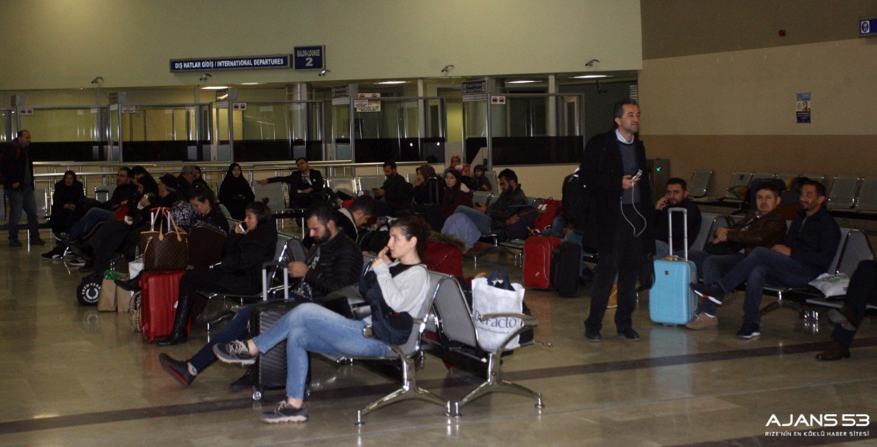 Trabzon'da, dün gece etkili olan yoğun sis nedeniyle 4 uçak, çevre illerdeki havaalanlarına yönlendirildi. Yoğun sis nedeniyle Trabzon Havalimanı'na inemeyen Çaykur Rizespor'u taşıyan uçak da Samsun Çarşamba havalimanı’na indi. Pegasus hava yollarına ait uçak içinde bulunun yolcular yaklaşık 45 dakika uçak içinde bekletildikten sonra dış hatlar terminaline alındılar. Pegasus hava yollarına ait hiçbir yetkilinin ilgilenmediği yaklaşık 180 yolcu havalimanın da saatlerce beklemek zorunda kaldılar. Uçak ile Malatya’dan İstanbul Aktarmalı olarak Trabzon’a Çaykur Rizespor’ lu futbolcular’ da saatlerce havalimanın da bekledikten sonra otobüs ile Rize’ ye döndüler.